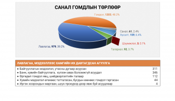 Засгийн газрын Иргэд, олон нийттэй харилцах 11-11 төвд иргэдээс ирүүлсэн өргөдөл, гомдол, санал, хүсэлтийн статистик мэдээ
